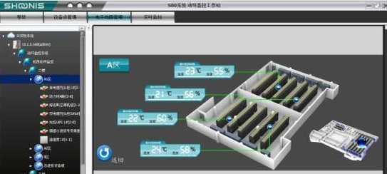 SHOONIS 機房動力環境監控系統,系S80云安防系統的一個子系統,S80云安防系統采用目前最先進的云計算和物聯網技術,包括:動力環境監控、門禁、防盜報警、視頻監控、停車場、消費、通道控制、設備監控、能耗管理、電梯管理、會議室、訪客管理、信息發布等子系統。