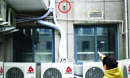 2月8日下午,記者來到天福宜家小區。居民葛先生說,他住在6號樓二單元 ,這是個商住兩用樓,一、二層是網點,三樓以上是住宅。大約一周前,樓下的翠峰苑火鍋城在兩個單元之間的外墻上安裝了一個攝像頭,這讓居民們很不滿,“出入單元門都覺得很不自在,就像有個人在盯著似的,這侵犯了我們的隱私權。”